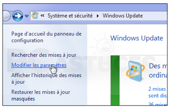 3- Dans le volet gauche de Windows Update, cliquez sur Modifier les paramètres.